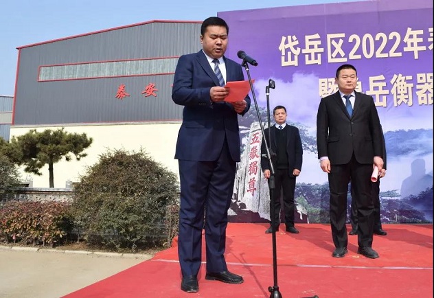 2月12日,角峪镇举行2022年春季重点项目集中开工暨鲁岳衡器加工项目开工仪式。区委全面深化改革委员会副主任袁义明,区委常委、人武部部长杨留洋,镇党委书记董加军,泰安市鲁岳衡器有限公司项目负责人程美生出席活动。